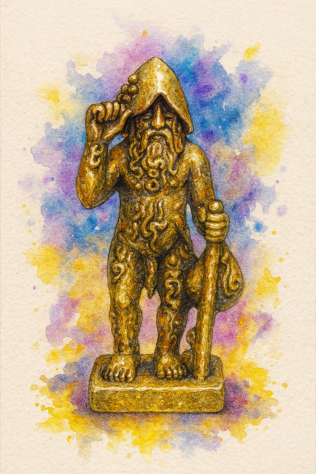 Його тіло вилите з бронзи або сплаву, схожого на той, з якого кують дзвони. Але звук його мовчання глибший і щільніший. Під пальцями відчувається не метал, а намолена речовина, що пульсує — наче шкіра живої істоти. Віскозна патина на поверхні — слід доторку часу, а не лише рук. Кажуть, кожен Palad Khik — це відбиток янтри, згорнутої в тіло, коди мантр, які не можна прочитати, але які читають тебе, щойно ти їх торкаєшся.