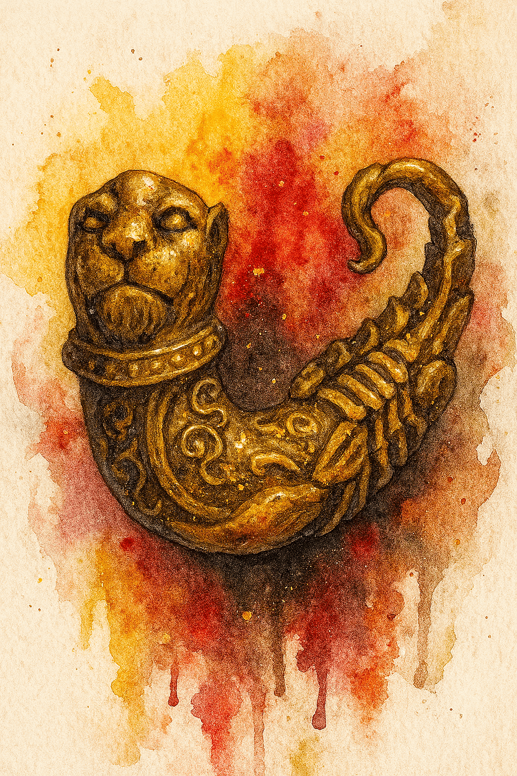 У скрині, де пахощі старої латуні змішуються з тінню прадавніх заклинань, лежить амулет, що несе у собі подвійну душу — тіло скорпіона і голову лева. Він мідяний, важкий, наче крихітний уламок іншої епохи, наче клинок, схований у фалічній формі — древній, як сама магія. Це Palad Khik Singh Maeng Pong, народжений у тайській тиші між ремеслом і ритуалом.