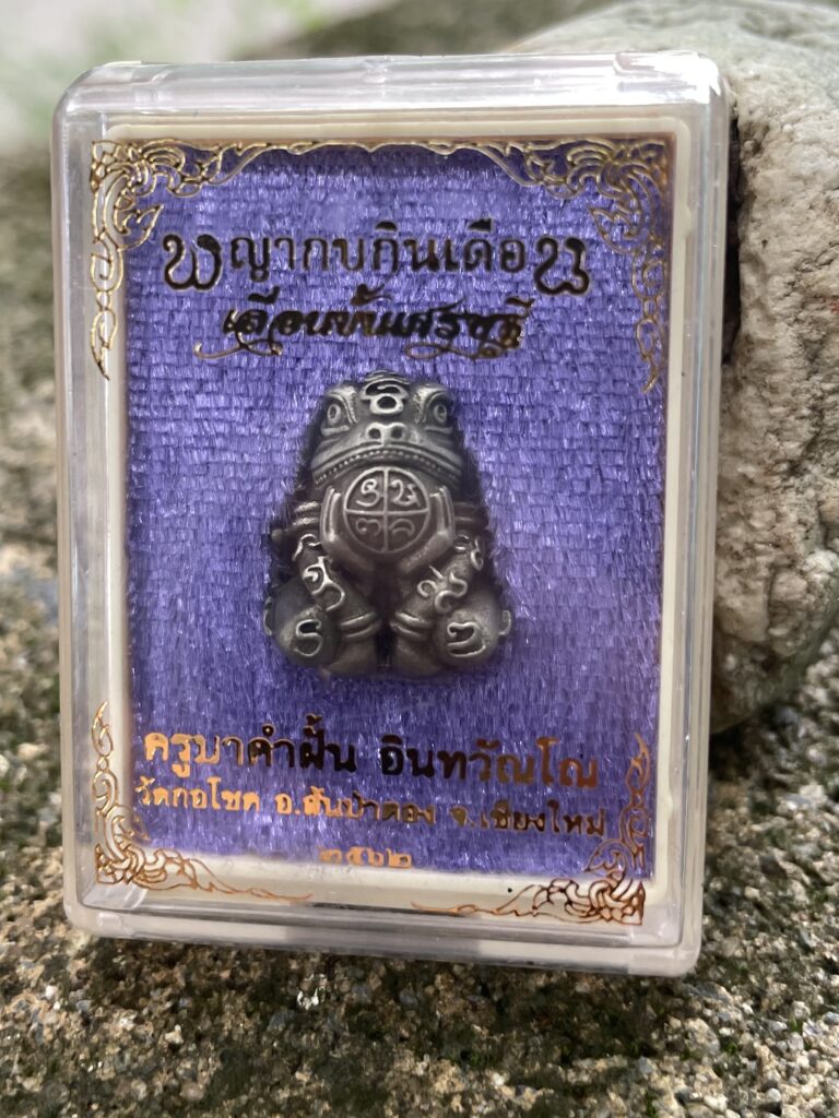 Цей амулет, “Phaya Kan Kin Duean”, зображує жабу, яка “поглинає місяць”. Згідно з віруваннями, ця жаба символізує залучення багатства і не дозволяє йому витікати. Амулет має потужну енергію для залучення успіху в бізнесі, удачі в азартних іграх, фінансового процвітання та підвищення соціального статусу. Він вважається талісманом, що “відкриває рот місяця” для отримання всіх багатств, та допомагає “підняти долю” і залучити гроші та золото. Амулет також використовується для захисту від негараздів та покращення особистої долі.