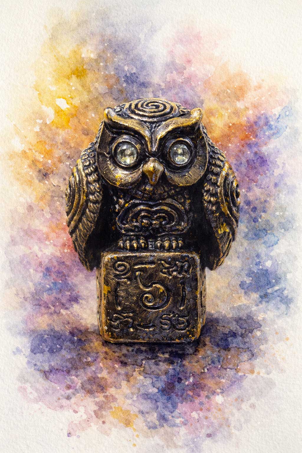 У глибокій тиші нічного Накхонсавану, де повітря тремтить від відлуння давніх мантр, народжується сутність, що здатна бачити крізь завісу невидимого. Це не просто артефакт, а застигла візія — Phaya Nok Thued Thue Roon 11, великий містичний пугач, чия присутність наповнює простір відчуттям спокійної, але невідворотної сили.