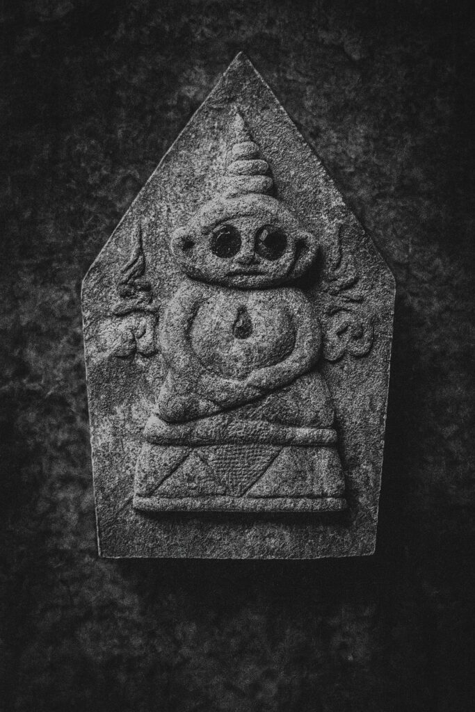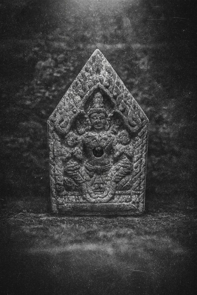 На звороті — інша істота, Ngung Ta Daeng, статура округла, очі — дві палаючі зірки, які ніби бачать крізь оболонку світу. Вона не усміхається і не погрожує — вона просто є. Її сутність — прадавня, позбавлена моралі, як глина, що пам’ятає всі сліди. Це дух, що не спить, і якщо його потривожити, він говорить мовою тіла, бажання й зваби.