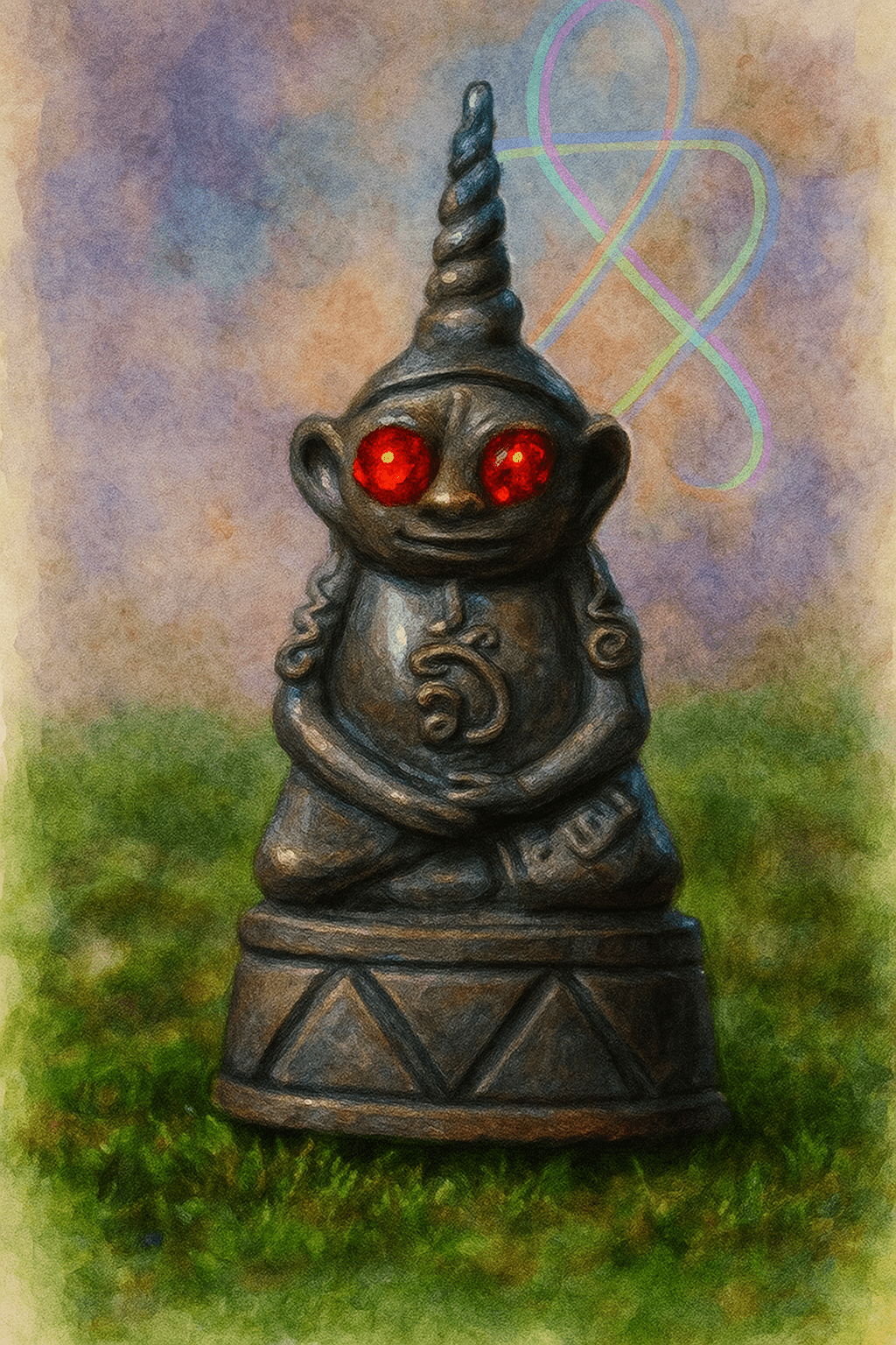 У кожному пантеоні є ті, кого запрошують на свята, і ті, кого тримають за лаштунками. Пхра Нганг — із других. Його очі — червоні, як свіже бажання. Його тіло — ні статуя, ні тінь, а залишок чогось, що було богом, а стало інструментом. Кажуть, що він народився не в монастирі, а на полі смерті — коли кров залила землю Аюттайї, і одна з фігур Будди всотала в себе цю силу, перетворившись на щось нове.