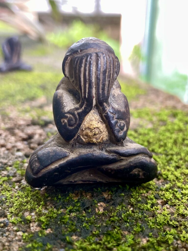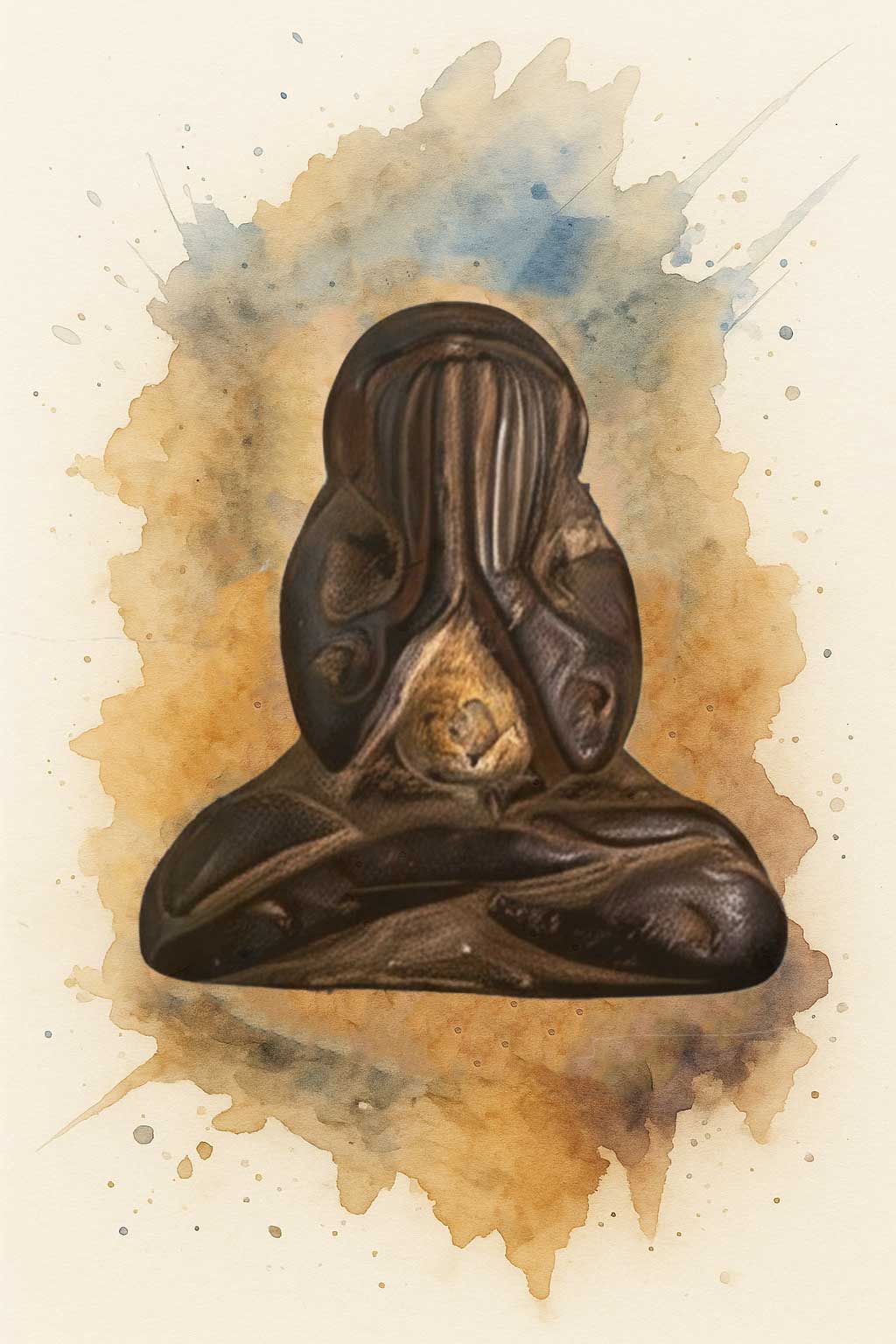 Існує, а може — лише зберігається у легенді, артефакт, народжений десь на межі мангрових лісів Келантану та бамбукових заростей південного Таїланду. Його називають Phra Pid Ta Luang Por Kron — невелика фігурка Будди, що затуляє обличчя руками: не стільки втомлено, скільки зосереджено, ніби відвертаючись від марноти світу й розчиняючись у медитації. Це не просто глиняний уламок — це фрагмент часу, закам’янілий відлунням епохи, що розтанула, як дим фіміаму в повітрі.