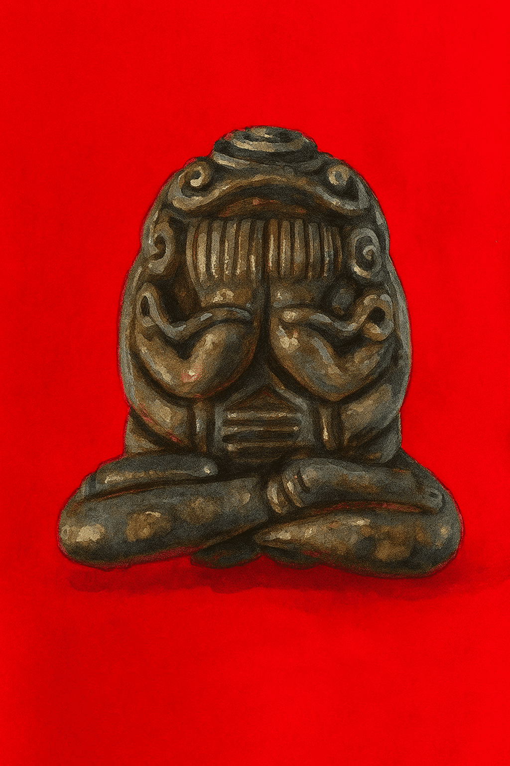 Амулет мав назву “Jumbo” не лише за розміром, а за глибиною, яку він приховував. У його товщі жив лабіринт з мантр, що не записані в жодному трактаті, та відлуння голосу Будди, що мовчки розповідав про межі й безмежність. Його форма — фігура, що сидить, закривши обличчя, — була не жестом страху, а абсолютної концентрації. Суть не в тому, щоб не бачити світ, а щоб не дати світові зруйнувати внутрішнє світло.