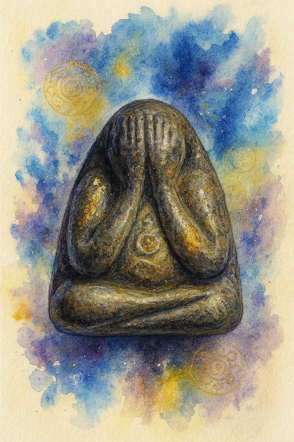 У тиші старого залу, де пахне старим лаком і зітханнями вітру, що пробивається крізь щілини дерев’яної покрівлі, лежить амулет — Phra Pidta Luang Phor Kaew Pim Yai Nuea Phong. Його форма — як згорток світла, що згорнувся в себе, сховавшись від галасу світу. Дві руки, мов пелюстки лотоса, змикаються на обличчі Будди, відгороджуючи його зір від марного видовища сансари. Він не дивиться — не тому, що боїться, а тому, що все вже побачив. Його сліпота — це останній акт мудрості, заклик до тиші.