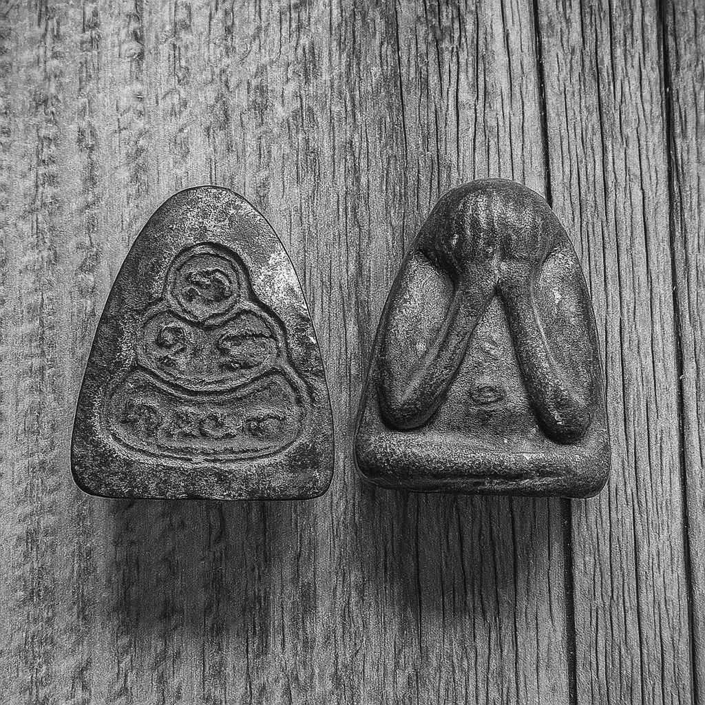 Темна поверхня амулета, наче вкритого тінню старого лаку, дихає спокоєм. У цьому тілі — пил священних текстів, стерті пальмові листи, розтерті в порошок мантри, золото, змішане зі страхами і надіями поколінь. Він пахне м’яко, майже непомітно, але якщо торкнутися його вночі, в тиші — можна відчути запах дощу, що впав на землю храму Wat Khruea Wan, де Луанг Пхо Кеу колись сидів у медитації, нерухомий, як сам цей амулет.