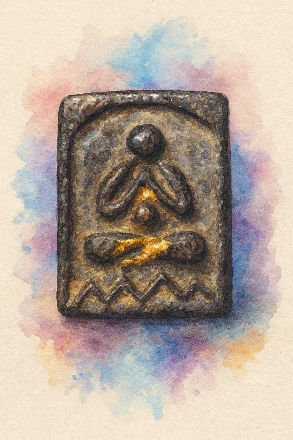 Коли ти вдихаєш з ним повітря — темрява розсіюється, і стає місце ясності, внутрішньої мудрості, смиренної впевненості. Амулет мовчазно шепоче: ти захищений, тебе ведуть, твоя доля світла. Його форма проста — прямокутник, що символізує стійкість — але у серці він несе глибоке містичне світло Wat Pak Khlong Makham Thao та спадщину великого Luang Pu Suk.