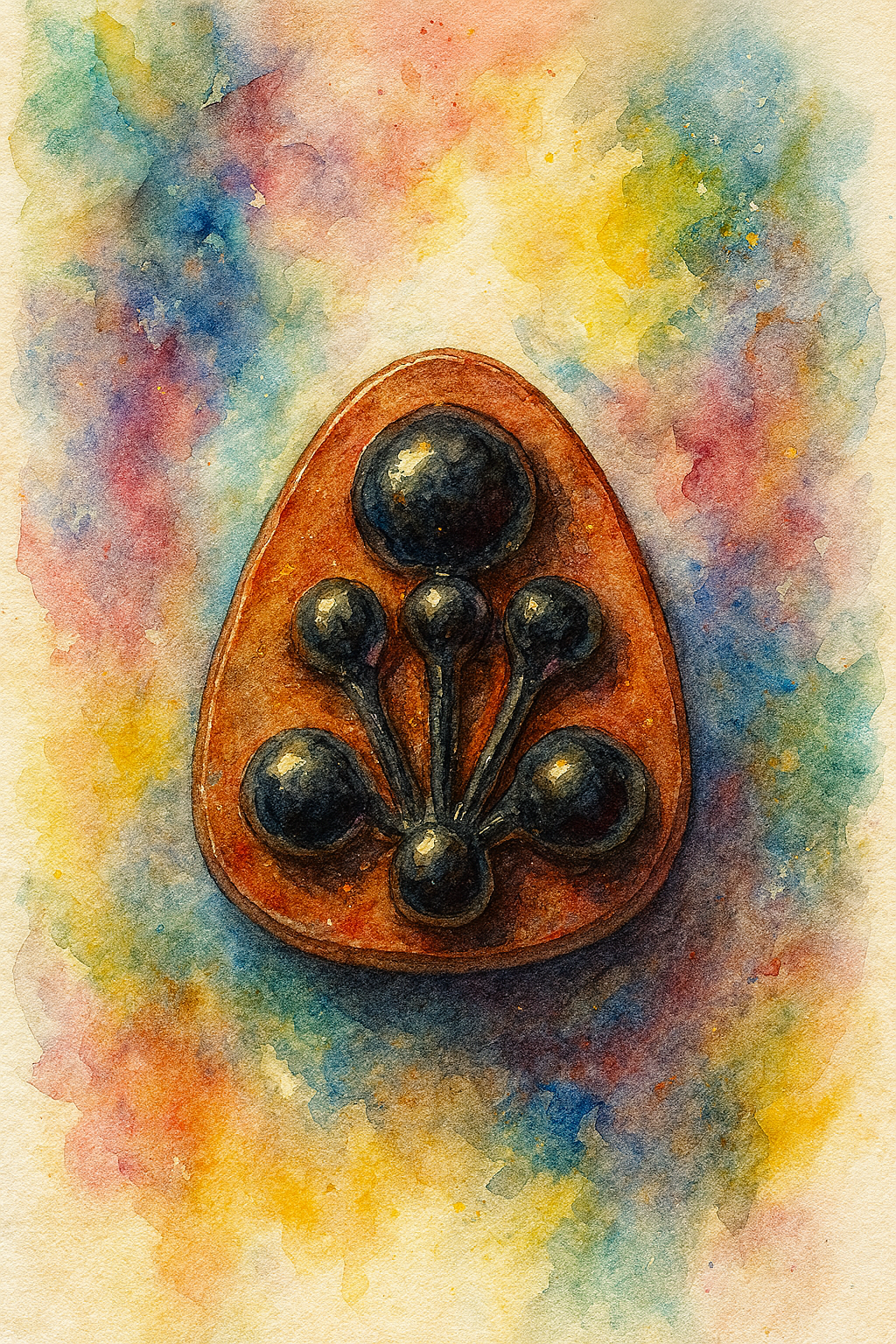 Форма Підта тут перетворена — він не просто затуляє очі, він стає очима, що дивляться зсередини. Не тікає від світу — а ховає його у собі. Цей амулет — не дзеркало, а чорна вода, в якій зникають обличчя, думки, страх. Вчення його не у словах, а в тиші: хто його носить — повинен бути готовий до зустрічі з власним відлунням. Бо він не захищає, як щит, а поглинає, як порожнеча.