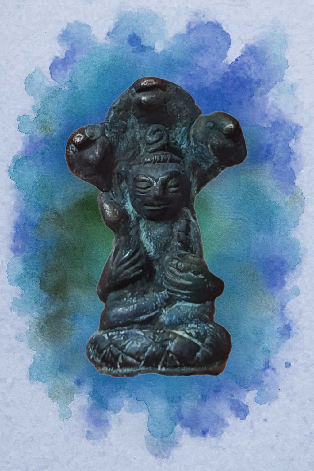 У глибинах буддійських містерій, між спогадом про просвітлення та острахом перед кармою, виникає постать Пхра Упакута — архата без часу, без місця, але з незламною присутністю. Він — не просто монах, що пішов у самітництво, а охоронець самої Дхарми, той, кого закликають, коли світ хитається між світлом і пітьмою. Амулет, що зображує його в позі медитації під розпростертими головами наґи, — не символ, а печать. Над його головою згорнута багатоголова наґа — уособлення мудрості, прадавнього знання, що охороняє тих, хто не схибить зі шляху.
