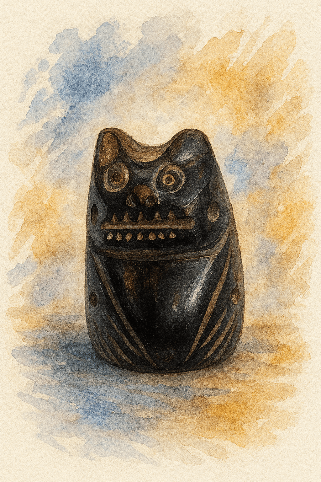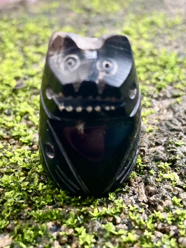 Його вирізьблено з рогу — не просто буйвола, а того, що помер від блискавки. Місцеві називають це “Fah Pa Tai” — смерть, обрана небом. Такий ріг не є мертвим матеріалом. Він дихає грозовою пам’яттю, тримає в собі крик хмари, що стала лезом, і тишу після грому. З нього вирізають не прикраси, а контейнери сили.